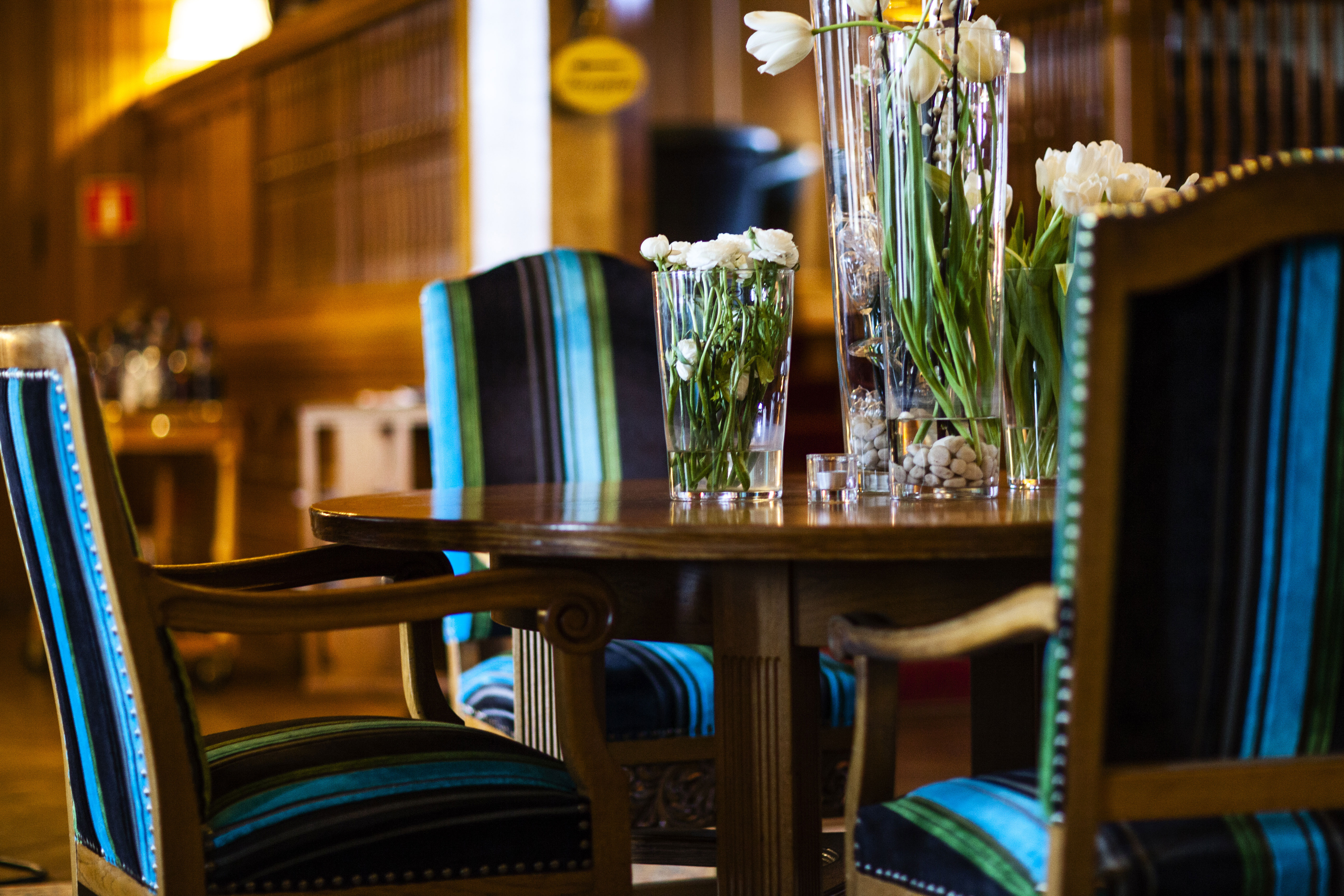 Den stemningsfulde bar er et elegant sted at tage sig en drink efter middagsmaden. Om sommeren kan man desuden nyde drikkevarer ude på den udendørs terrasse, hvorfra der er udsigt ud over parken.