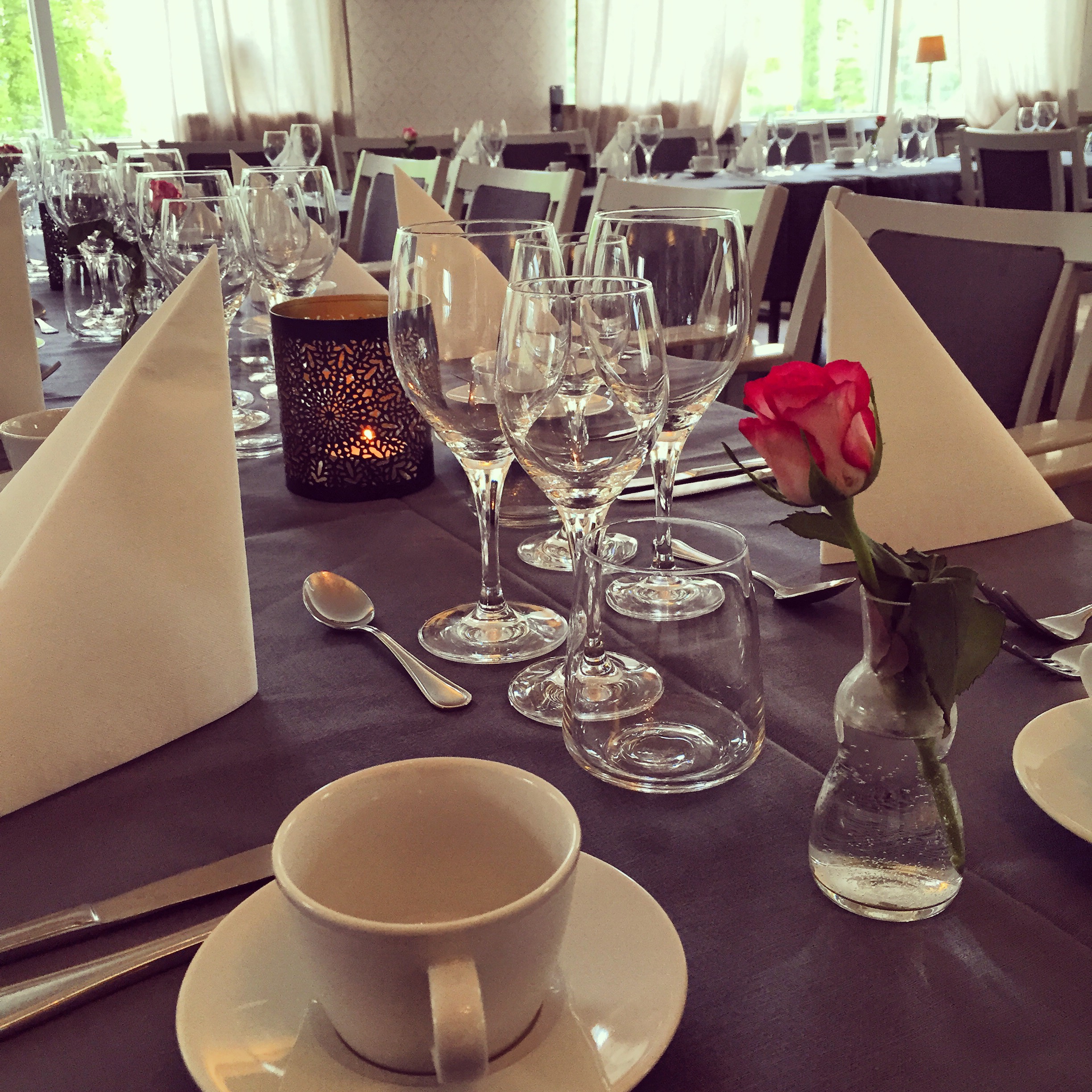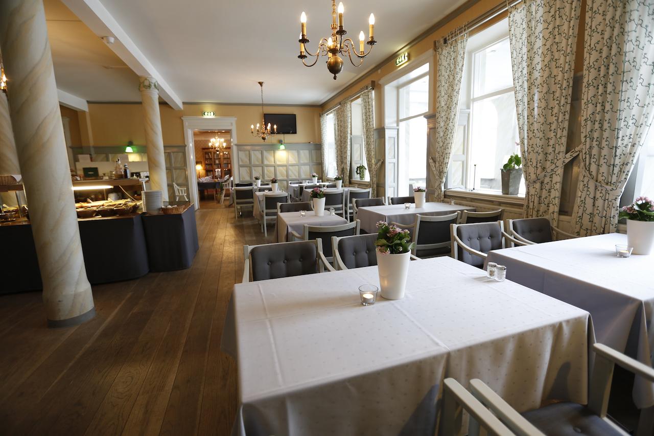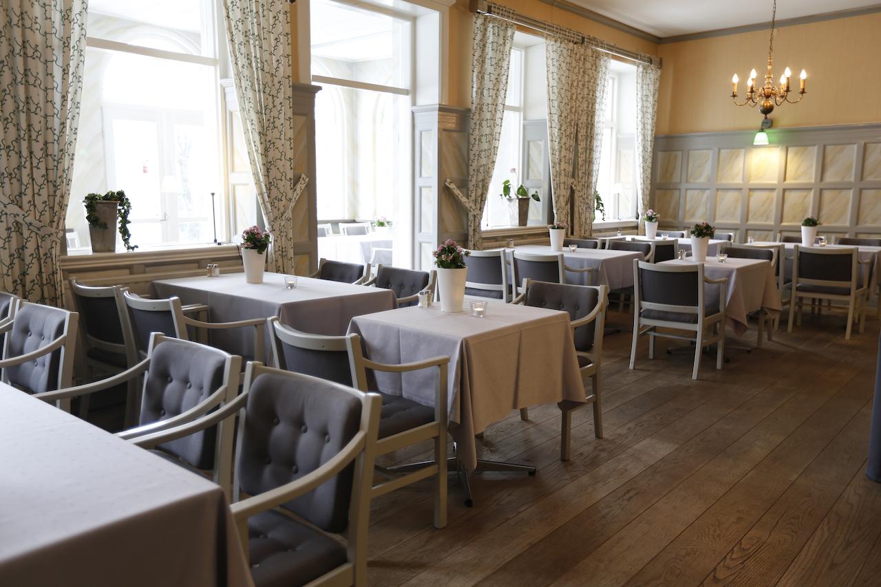 Der serveres morgenmad og frokost i hotellets bibliotek, hvor gæsterne også kan læse om Tyringe Kurhotells historie gennem de sidste 100 år. Kurhotellets restaurant tilbyder mad og drikke af højeste kvalitet og personalet har masser er erfaring, som garanterer dig førsteklasses service. I restauranten serveres der dagens frokost mandag til fredag mellem 11:30 og 13:30.