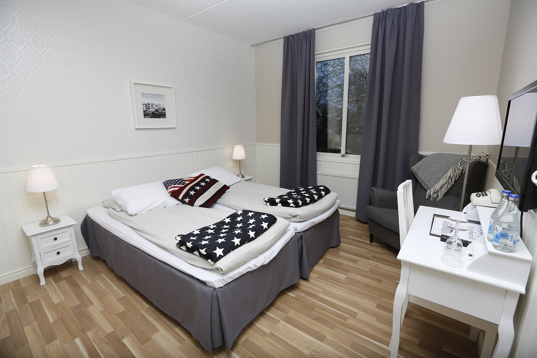 Tyringe Kurhotell tilbyder 34 hotelværelser i 4 forskellige kategorier. Alle værelser har eget badeværelse, TV og gratis WiFi. De fleste af værelserne er nyrenoverede.